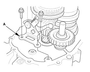 1. Remove the reverse shift fork (A).