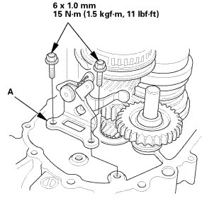 1. Install the reverse shift fork (A).