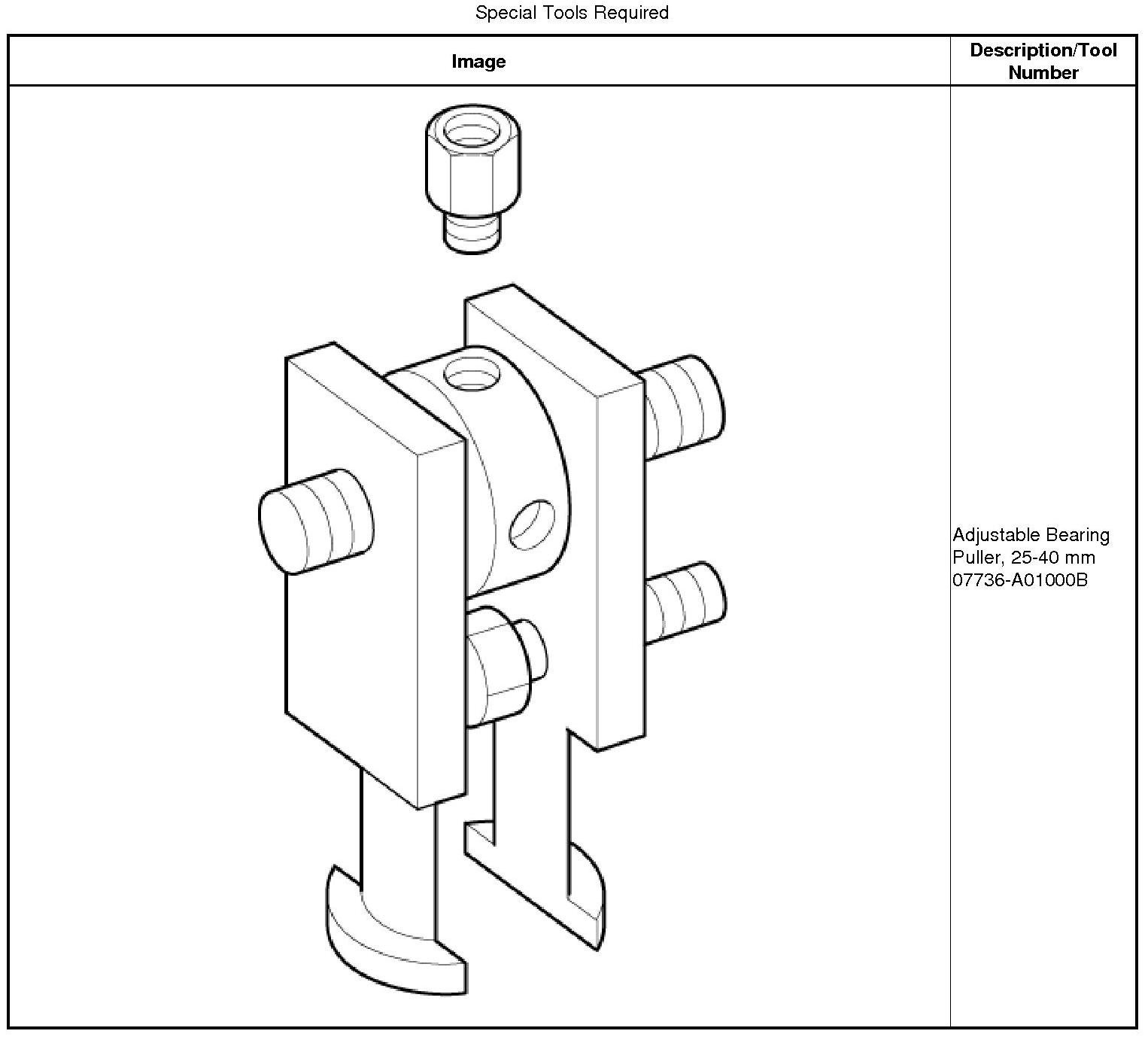 1. Remove the needle bearing (A) from the clutch housing (B) using the 25-40 mm adjustable bearing puller and a commercially available 3/8''-16 UNF slide hammer (D).