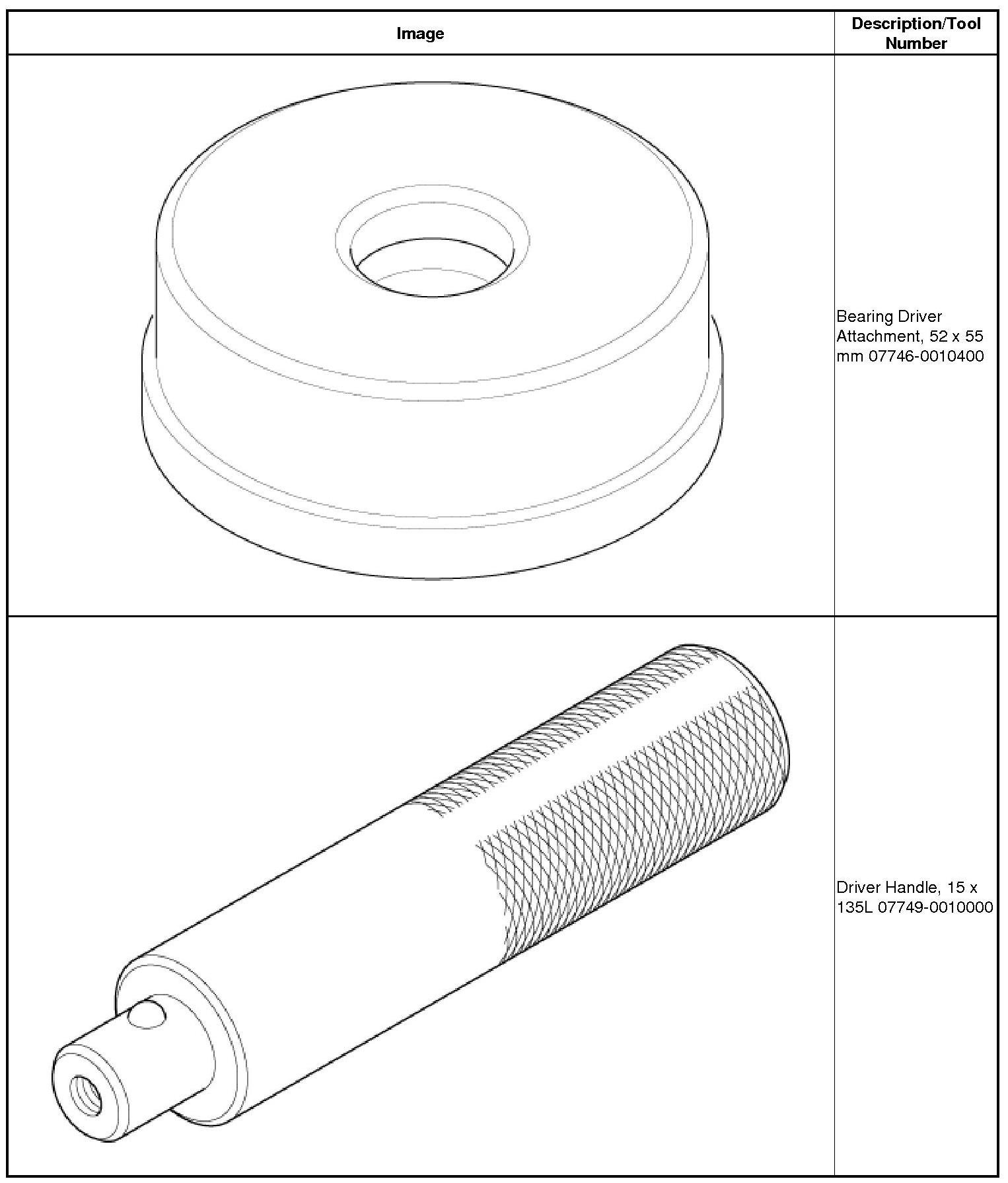 2. Install the needle bearing (A) using the 52 x 55 mm bearing driver attachment and the 15 x 135L driver handle.
