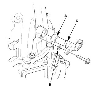 1. Remove the output shaft (countershaft) speed sensor (A), the plain washer (B), and the O-ring (C).