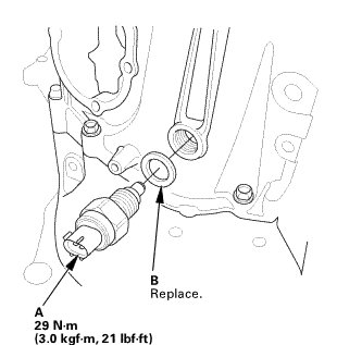 1. Remove the back-up light switch (A) and the 18 mm sealing washer (B).