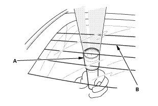 -3. With the help of an assistant inside the vehicle, have the assistant shine a strong flashlight (A) along each antenna wire (B). Check from the outside of the vehicle for any breaks or openings in the antenna wires (the light shines through any breaks or cuts).