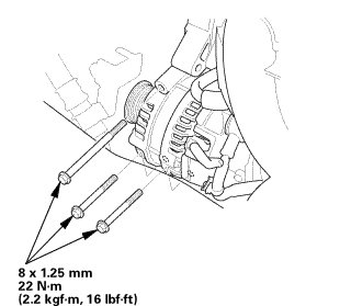 3. Torque the bolt to 50 Nm (5.1 kgfm, 37 lbfft) with a torque wrench and a socket, 19mm(C). Do not use an impact wrench. If the pulley bolt or crankshaft are new, torque the bolt to 177 Nm (18.0 kgfm, 131 lbfft), then remove the bolt and torque it to 50 Nm (5.1 kgfm, 37 lbfft).