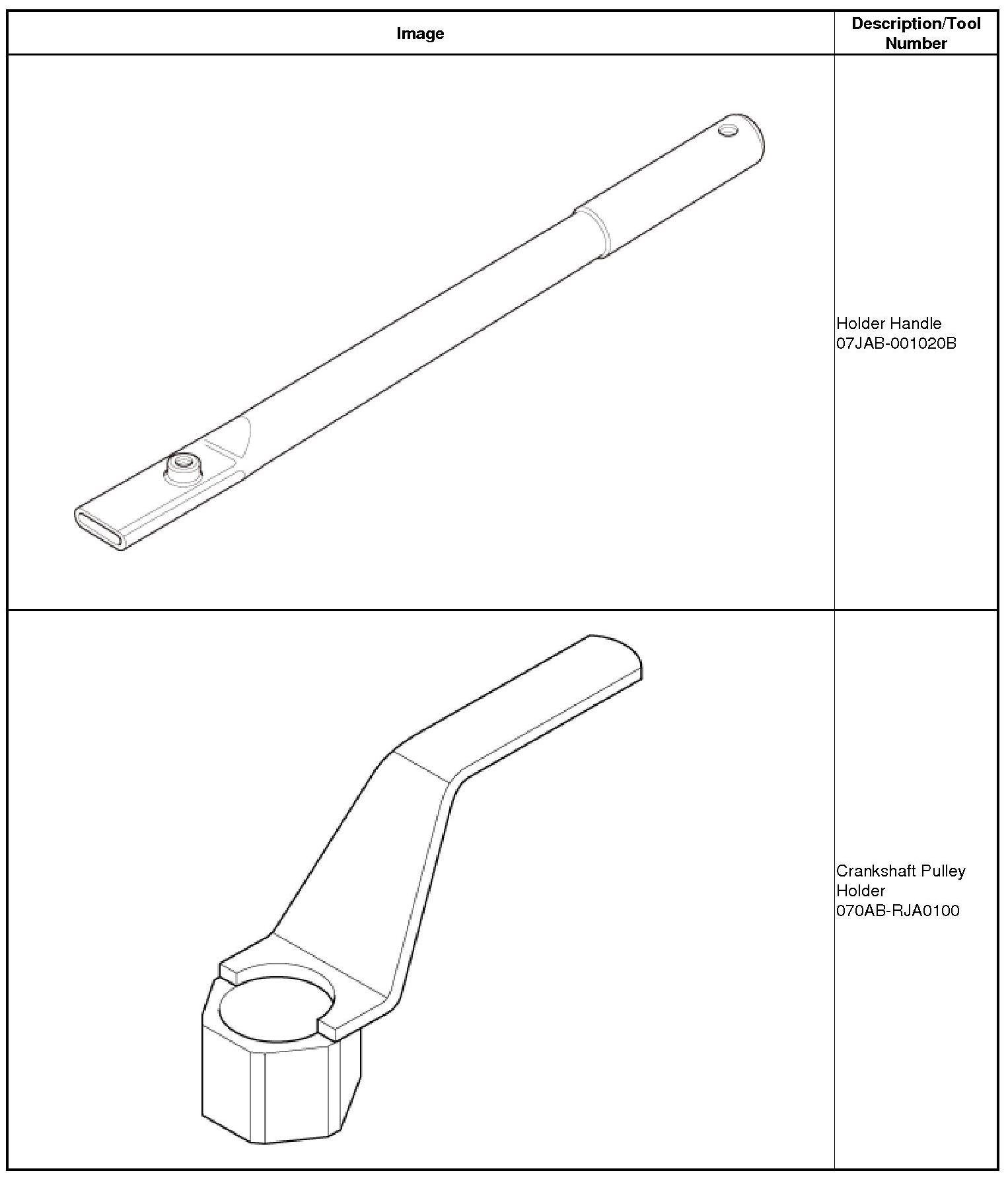1. Hold the pulley with the holder handle (A) and the crankshaft pulley holder (B).