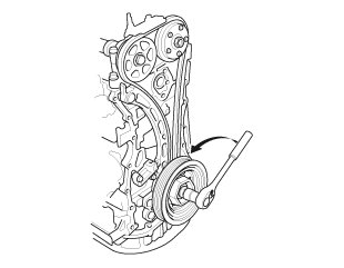 2. Turn the crankshaft counterclockwise to compress the auto-tensioner.
