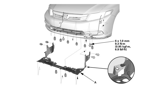 1. Install the under cowl panel (A).