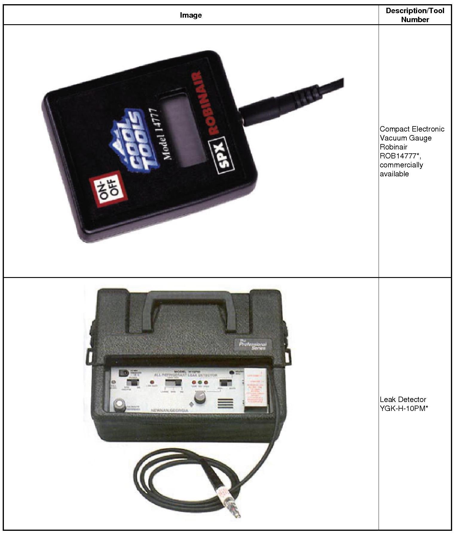 * Check the system for leaks using an R-134a refrigerant leak detector with an accuracy of 14 g (0.5 oz) per year or better.