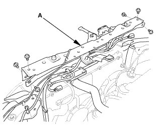 1. Remove the radiator mount upper brackets/cushions (A), and the A/C condenser upper mount brackets (B).