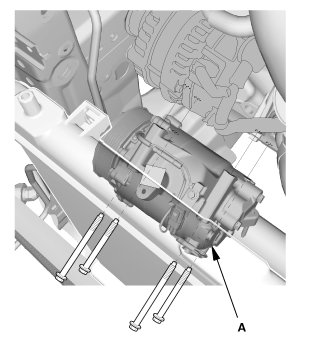 NOTE: Be careful not to damage the radiator fins when removing the A/C compressor.