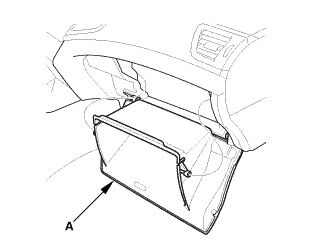 1. Move the auto-tensioner (A) using the belt tension release tool in the direction of the arrow to relieve tension from the drive belt, then remove the drive belt.