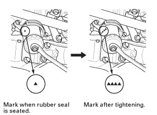 2. Inspect the filter to make sure the rubber seal is not stuck to the oil filter seating surface of the engine.