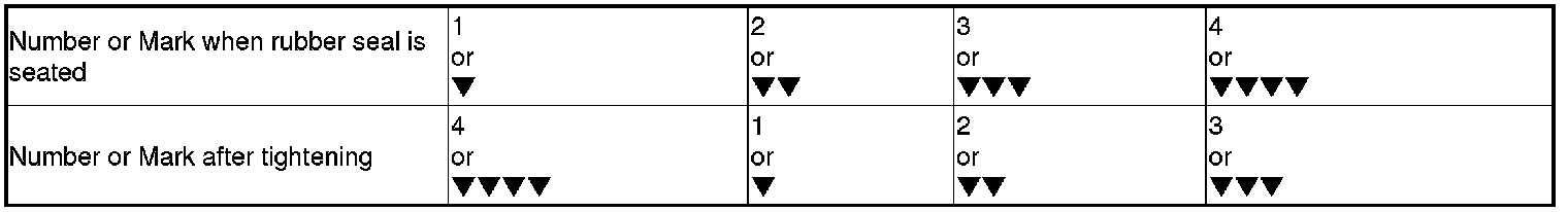 * Tighten the filter by turning it clockwise three numbers or marks from the one you noted. For example, if mark V is at the bottom when the seal is lightly seated, tighten the filter until the mark VVVV comes around to the bottom.