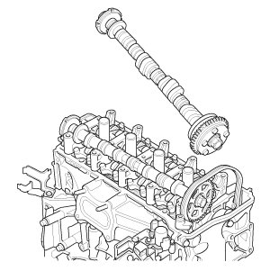 2. Remove the intake camshaft while keeping some tension on the cam chain.