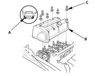 9. Inspect the cover washers (C). Replace any washer that is damaged or deteriorated.