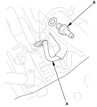 1. Install the PCV valve (A) with a new washer (B).