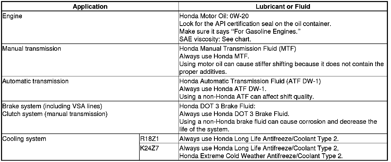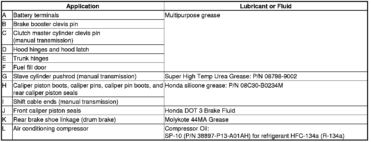 * Lubricate the following areas using the recommended lubricants and fluids.