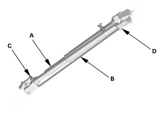 2. Hold the lower slide shaft (A) on the column with a piece of wire (B) between the joint yoke (C) of the lower slide shaft and the joint yoke (D) of the upper shaft to prevent the lower slider shaft from pulling out.