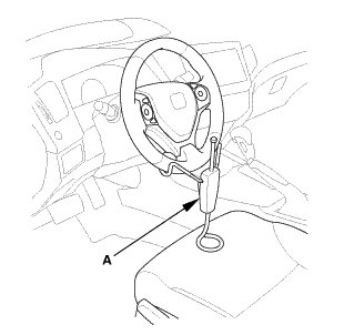 2. Center the steering wheel spokes, and install a steering wheel holder tool.
