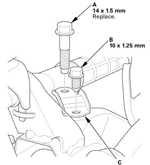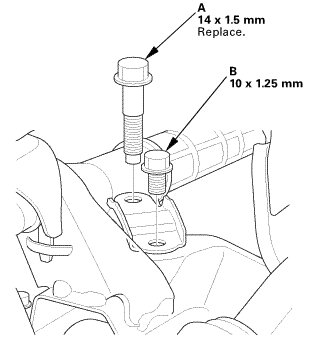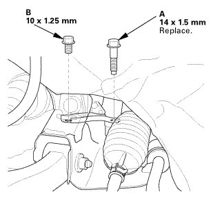 1. Loosely tighten the steering gearbox mounting bolt (A) and stiffener mounting bolt (B).