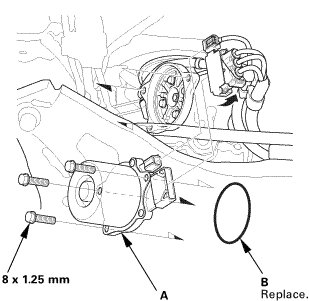 2. Disconnect the steering joint (B) from the pinion shaft.