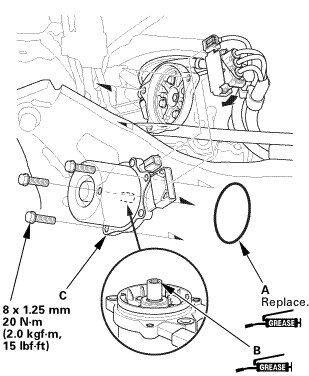 * Pinion shaft with center guide: Install the steering joint by aligning the center guide (C).