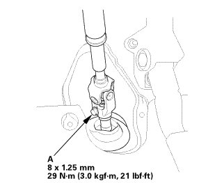 1. Tighten the steering joint bolt (A) to the specified torque.