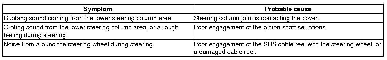 1. With the tires raised off the ground, check for the following symptoms by turning the steering wheel fully to the right and left several times.