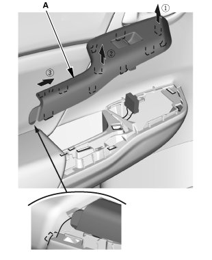 1. Remove the power window switch panel (A).