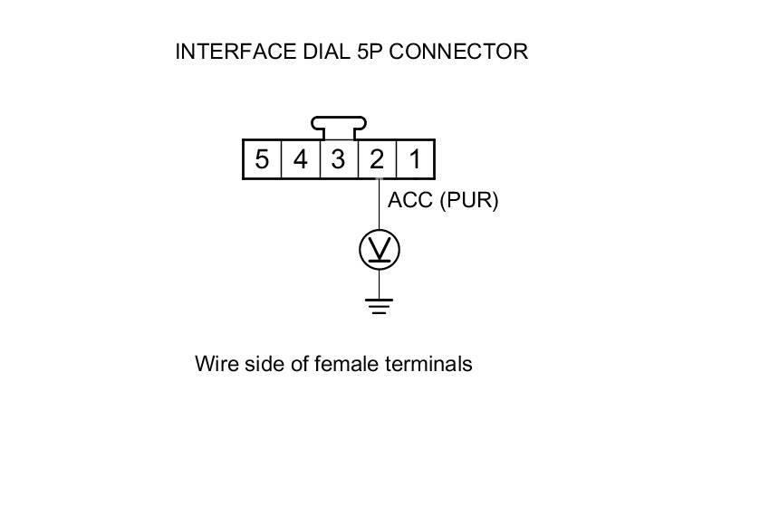 6. Measure the voltage between interface dial 5P connector terminal No. 2 and body ground.