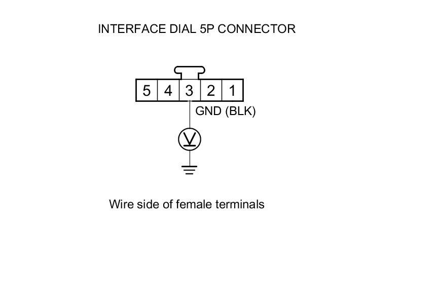 7. Measure the voltage between interface dial 5P connector terminal No. 3 and body ground.