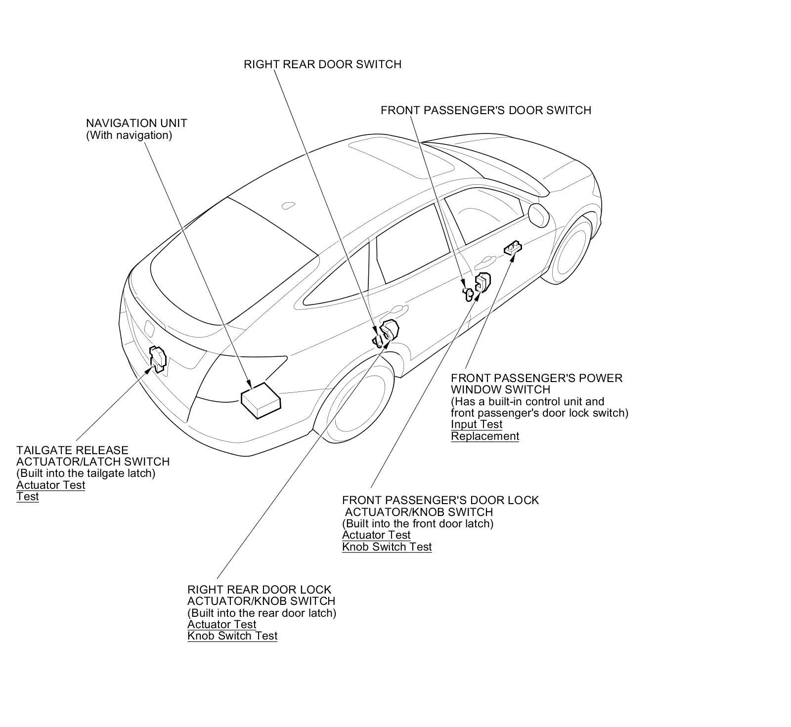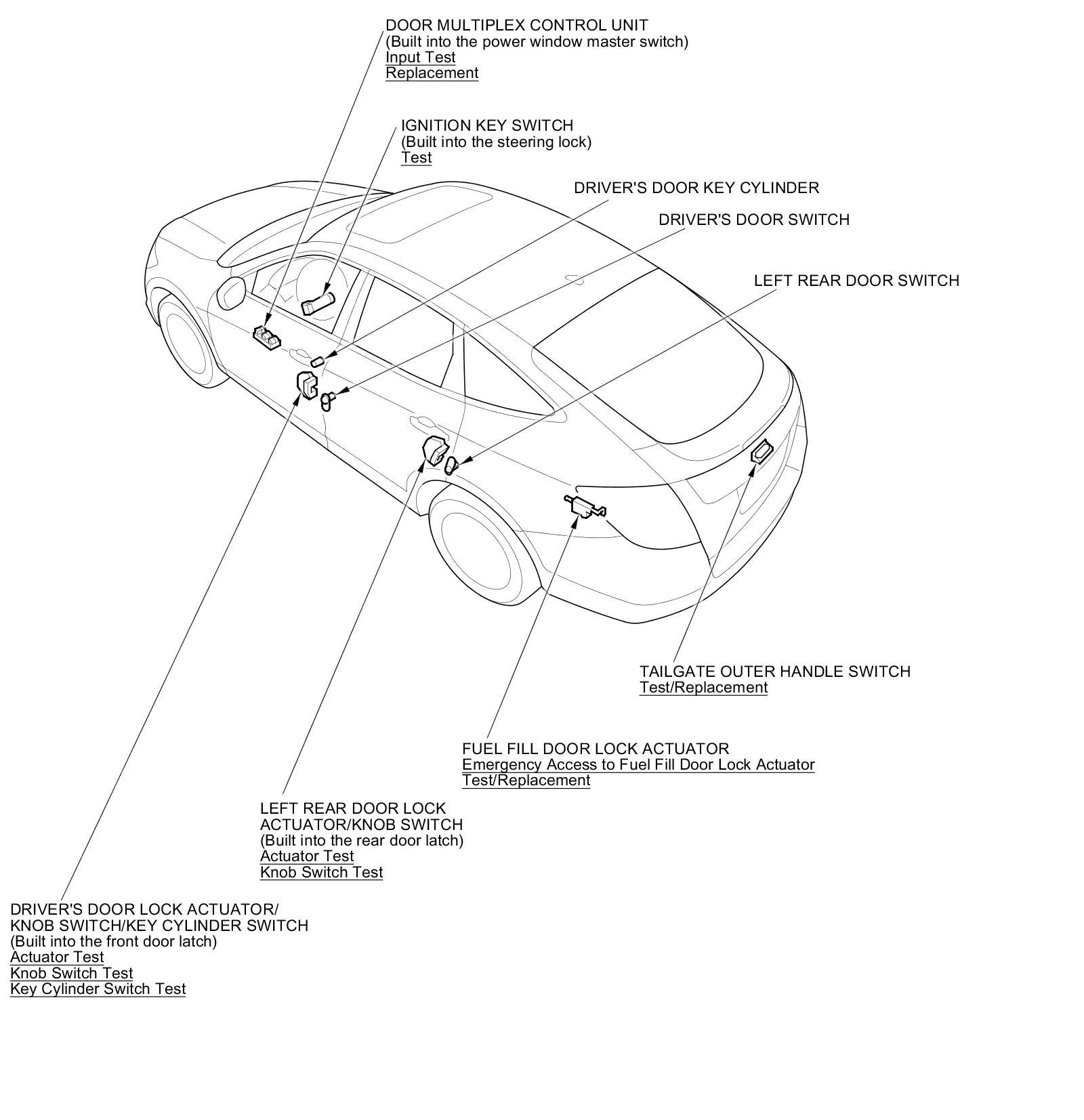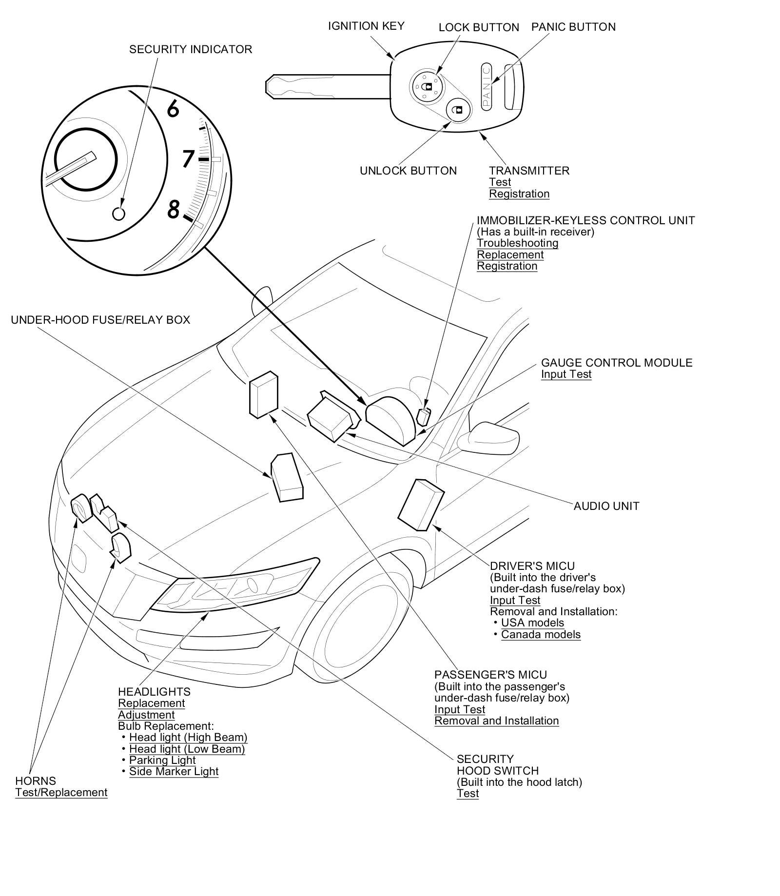 Keyless/Power Door Locks/Security System Component Location Index