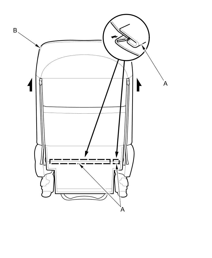 4. Release the bottom hooks (A), and unzip the seat-back cover (B).