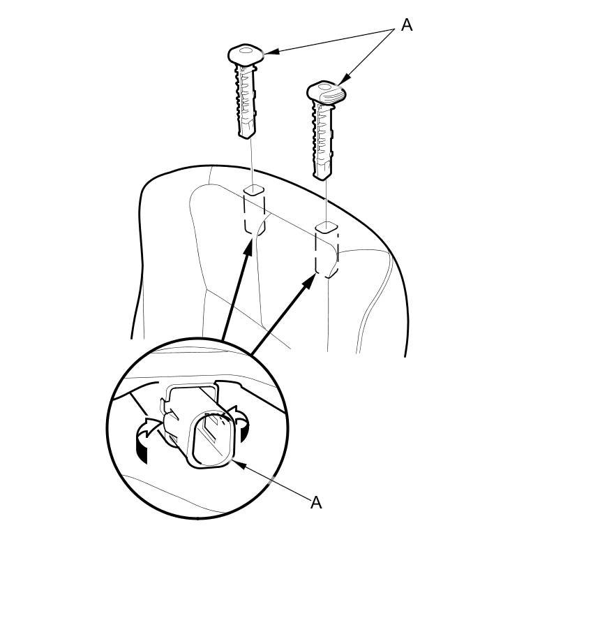 12. Pinch the tabs on the ends of the head restraint guides (A), and remove them from the seat-back.
