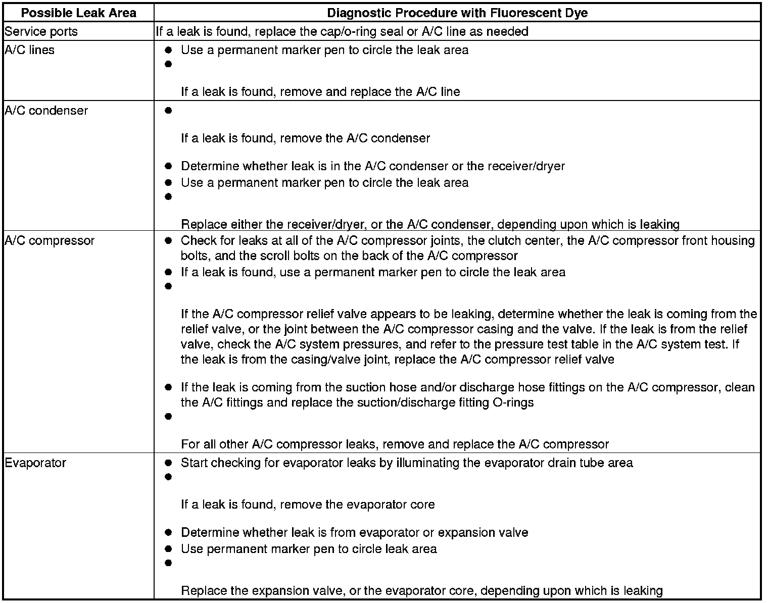 - Check the system for leaks using an R-134a refrigerant leak detector with an accuracy of 14 g (0.5 oz) per year or better.