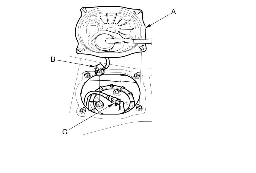 5. Disconnect the quick-connect fitting (C) from the fuel tank unit.