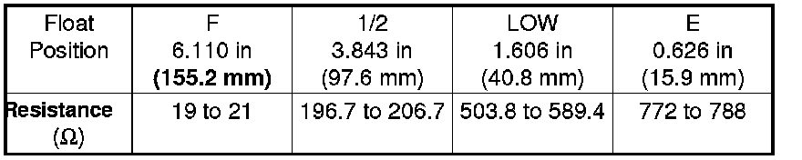 If you do not get the following readings, replace the fuel gauge sending unit Fuel Pump/Fuel Gauge Sending Unit Replacement.