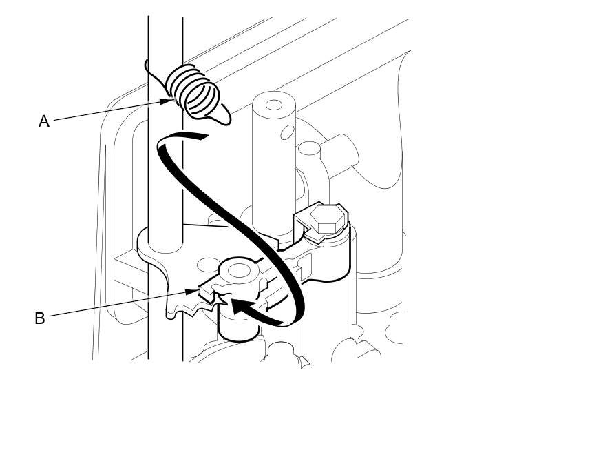 19. Install a new O-ring (A) on the input shaft (mainshaft) speed sensor (B), and install the input shaft (mainshaft) speed sensor in the transmission housing.