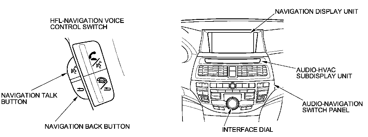 - The navigation unit temporarily disables the voice control buttons, but allows guidance to be heard. In addition, the audio unit suppresses the output from the audio unit, the XM receiver, the audio disc changer, or other audio accessories.