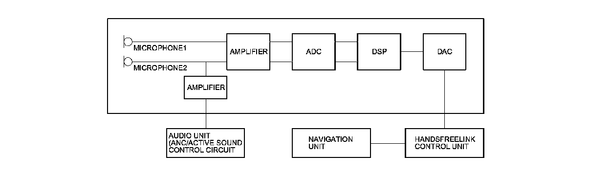 Receives voice commands and transmits them to the navigation unit or HandsFreeLink control unit. The microphone unit consist of two microphones. One microphone is combined with the front ANC/active sound control microphone. The microphones detects each of the driver's voice and passenger's voice separately.