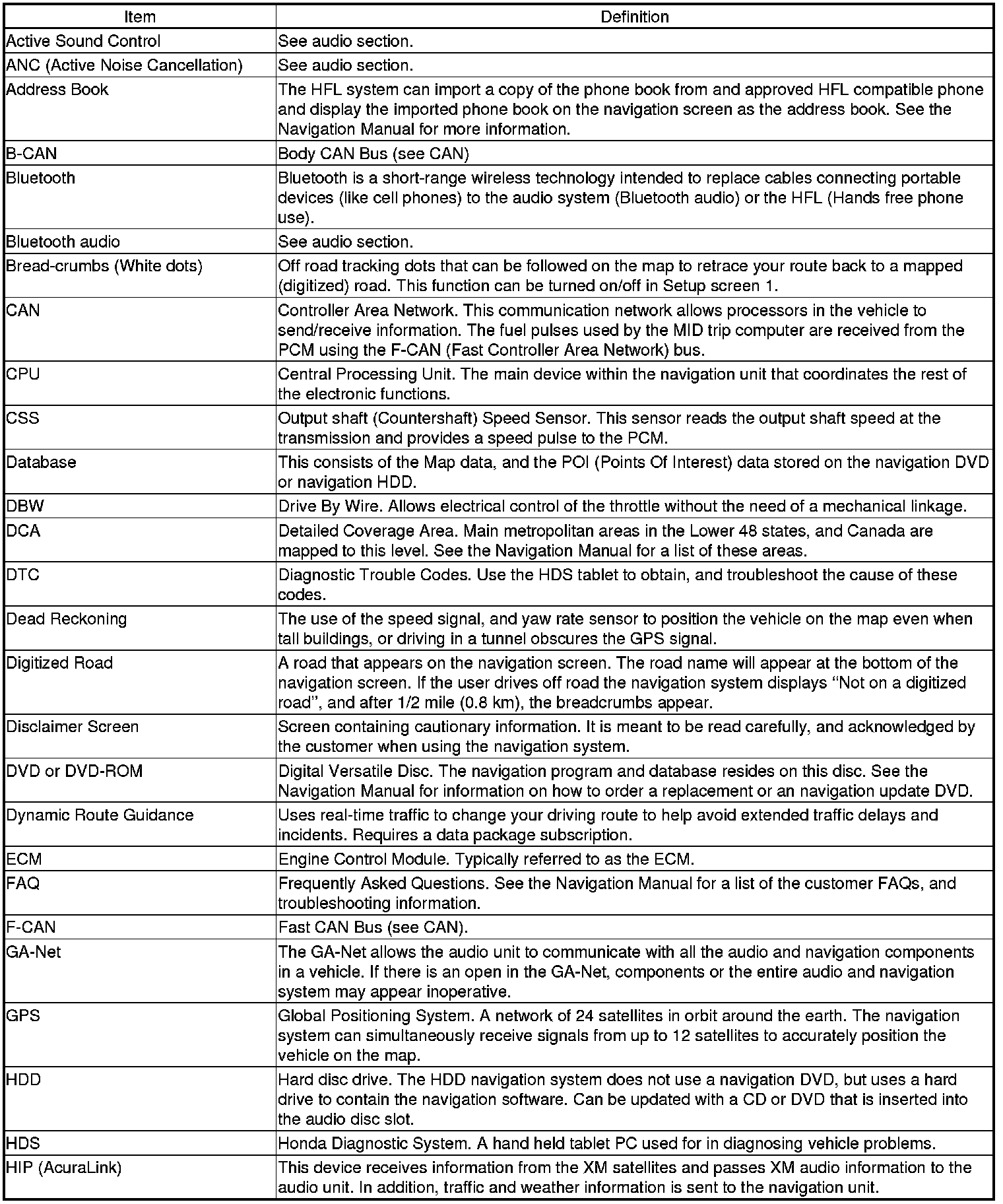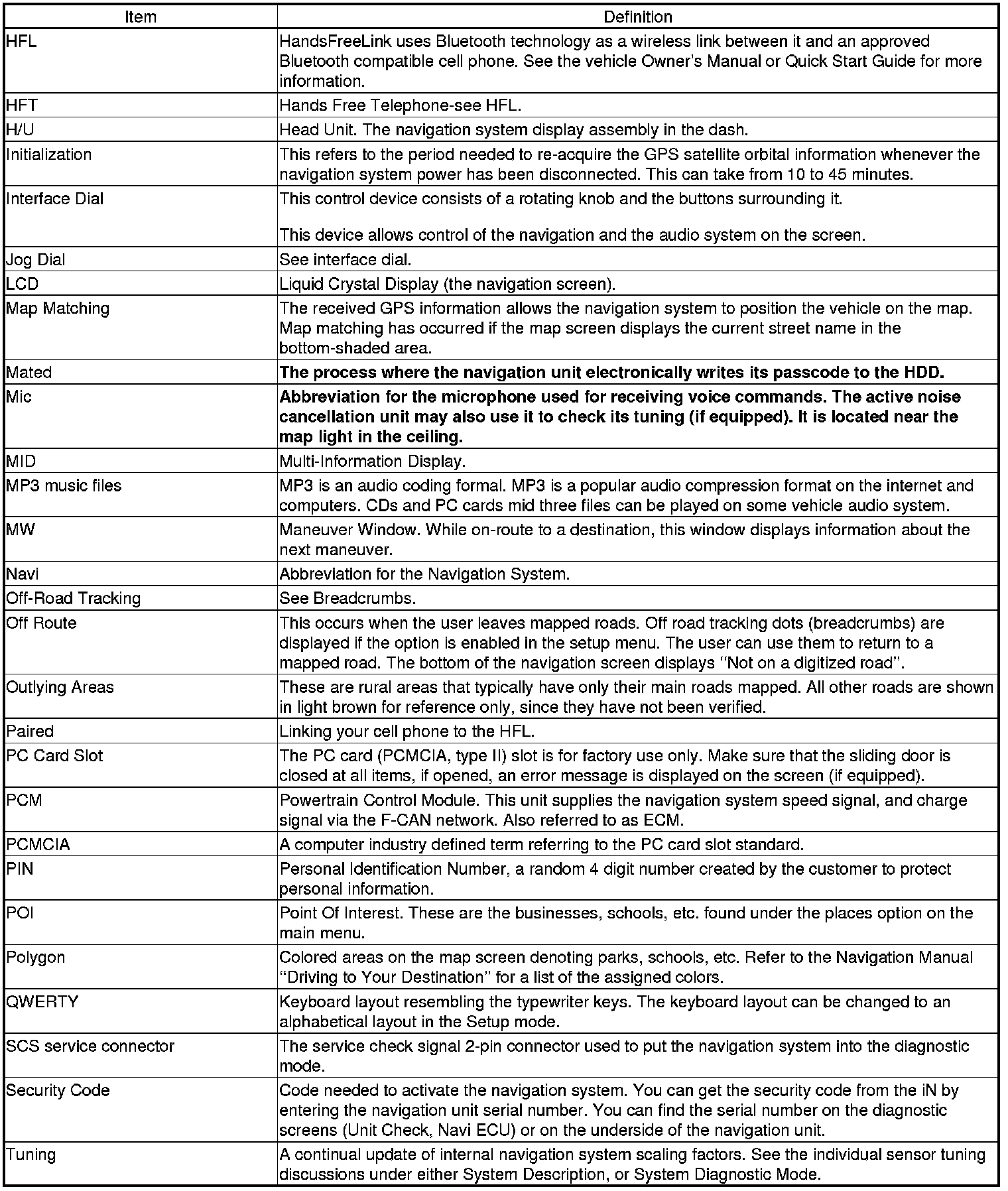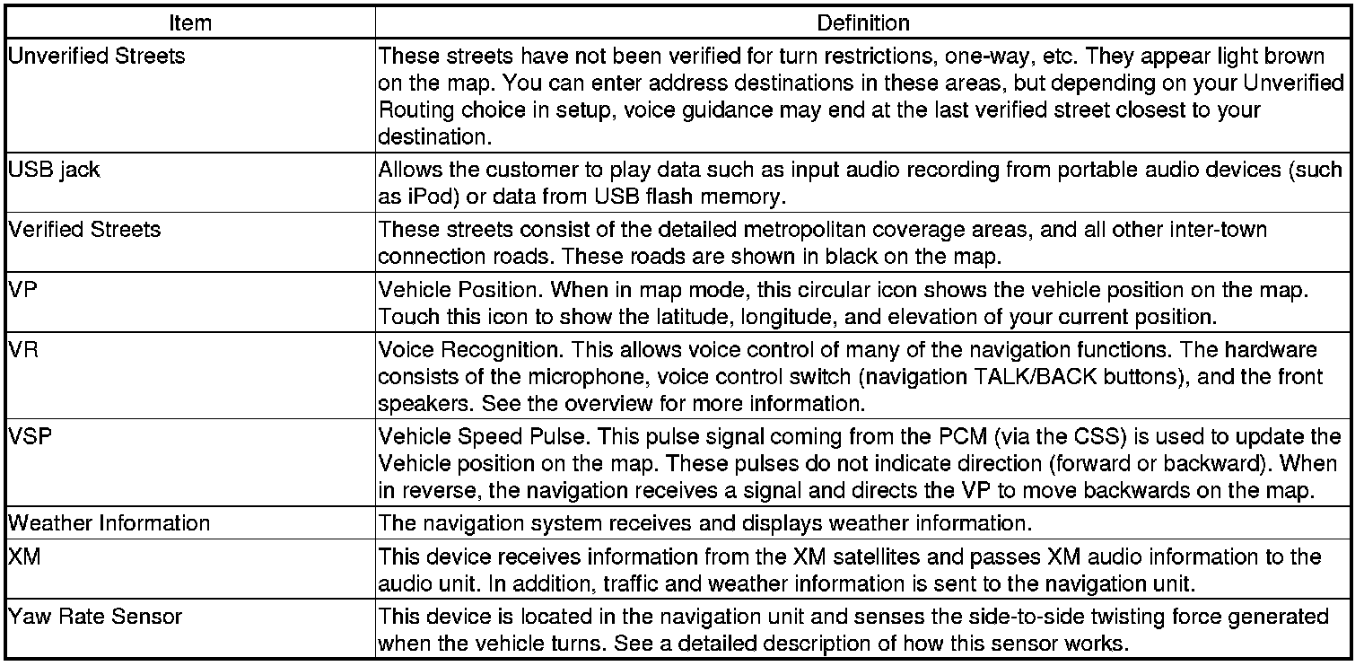 The following is a glossary of terms pertaining to the Navigation System.