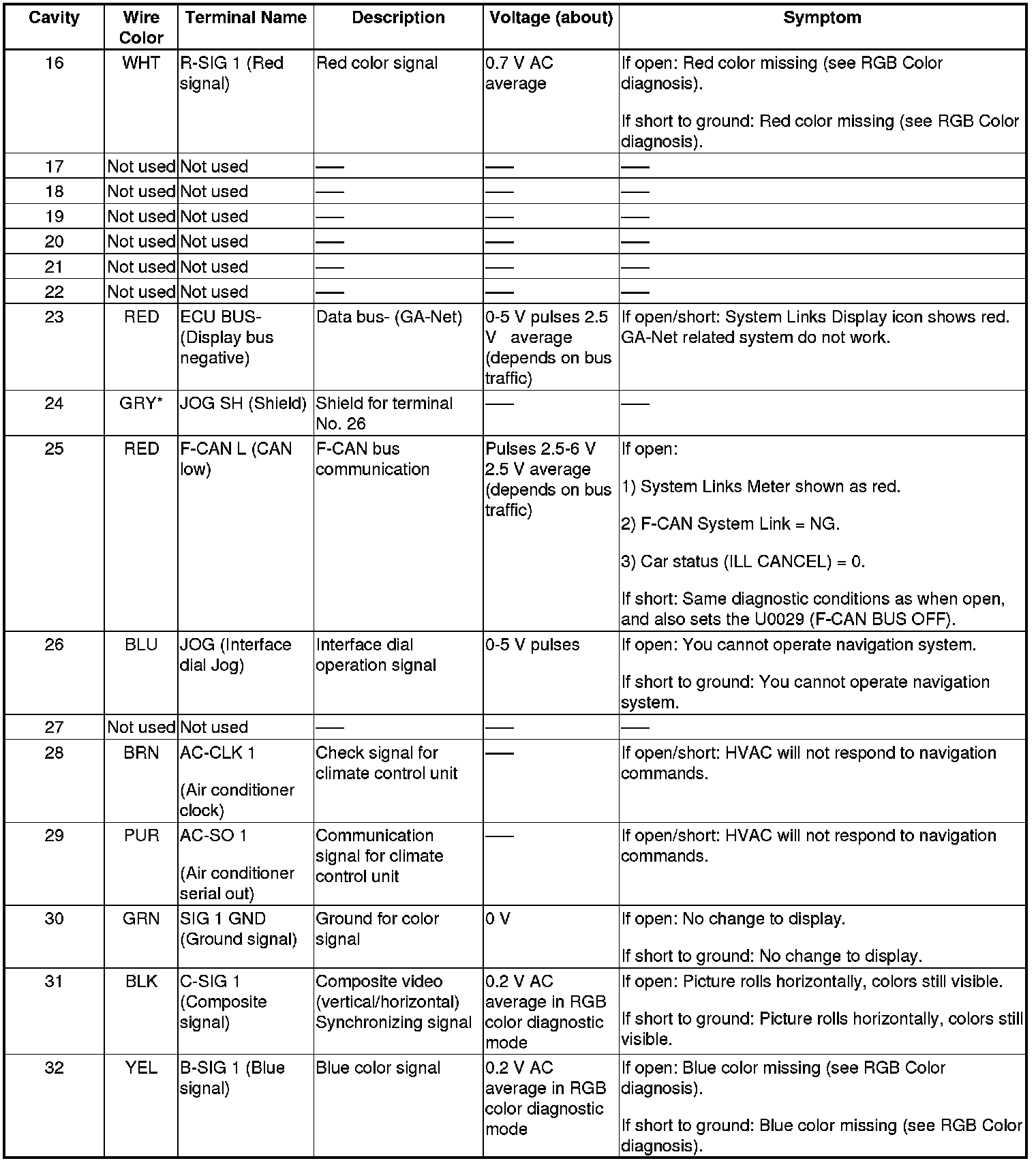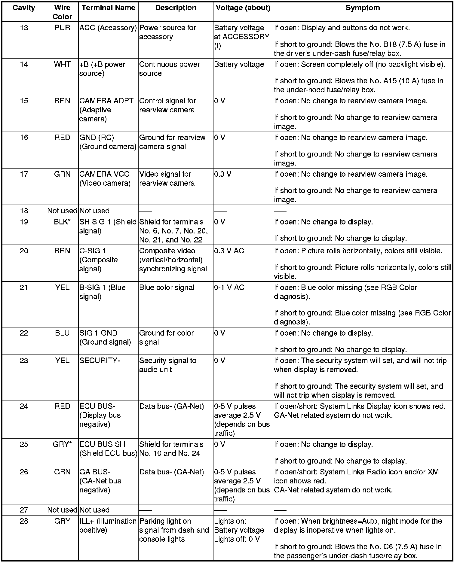 Navigation Display Unit Inputs and Outputs for 28P Connector