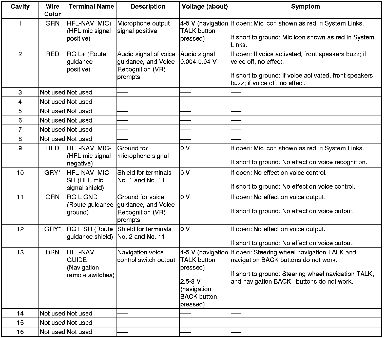 NOTE: Refer to the audio system section for front HFL-navigation-ANC/active sound control microphone 7P connector terminal No. 4.