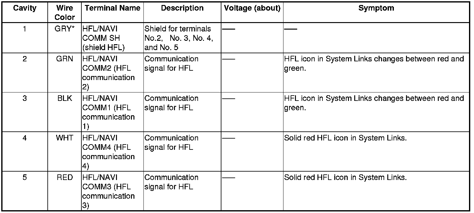 The Comm. Bus connects the HFL and the navigation unit. This bus supports these functions: