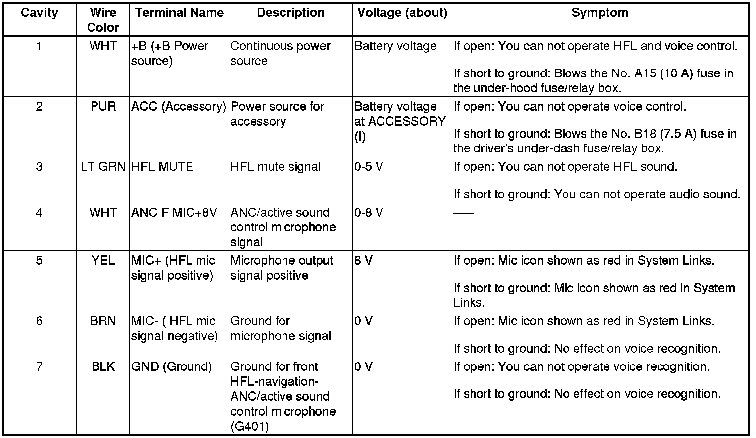Front HFL-Navigation-ANC/Active Sound Control Microphone Inputs and Outputs for 7P Connector