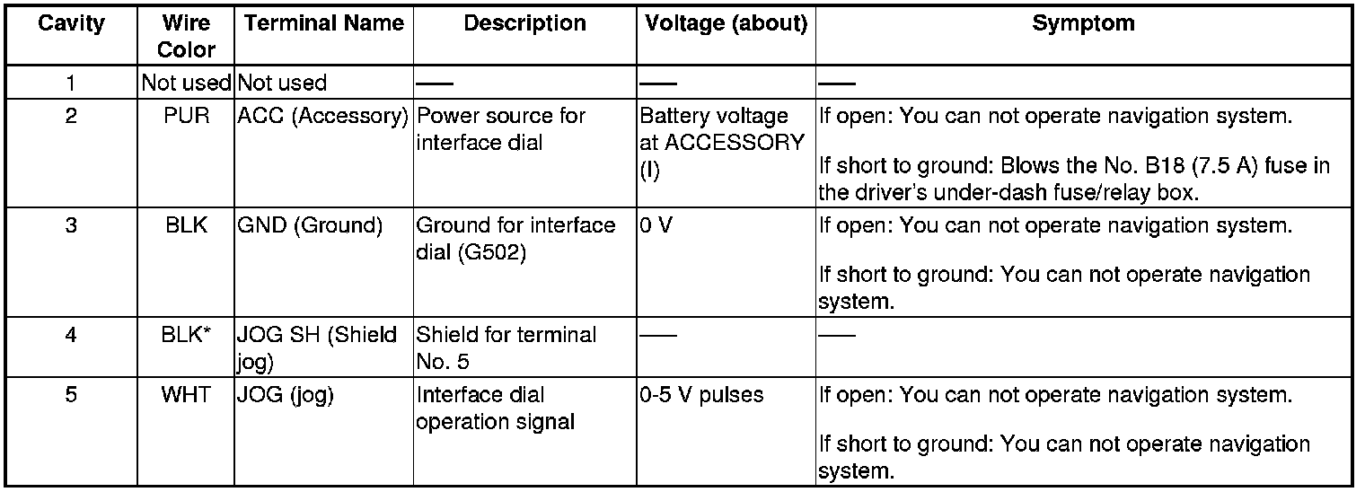 Navigation Unit Inputs and Outputs for Connector D (5P)