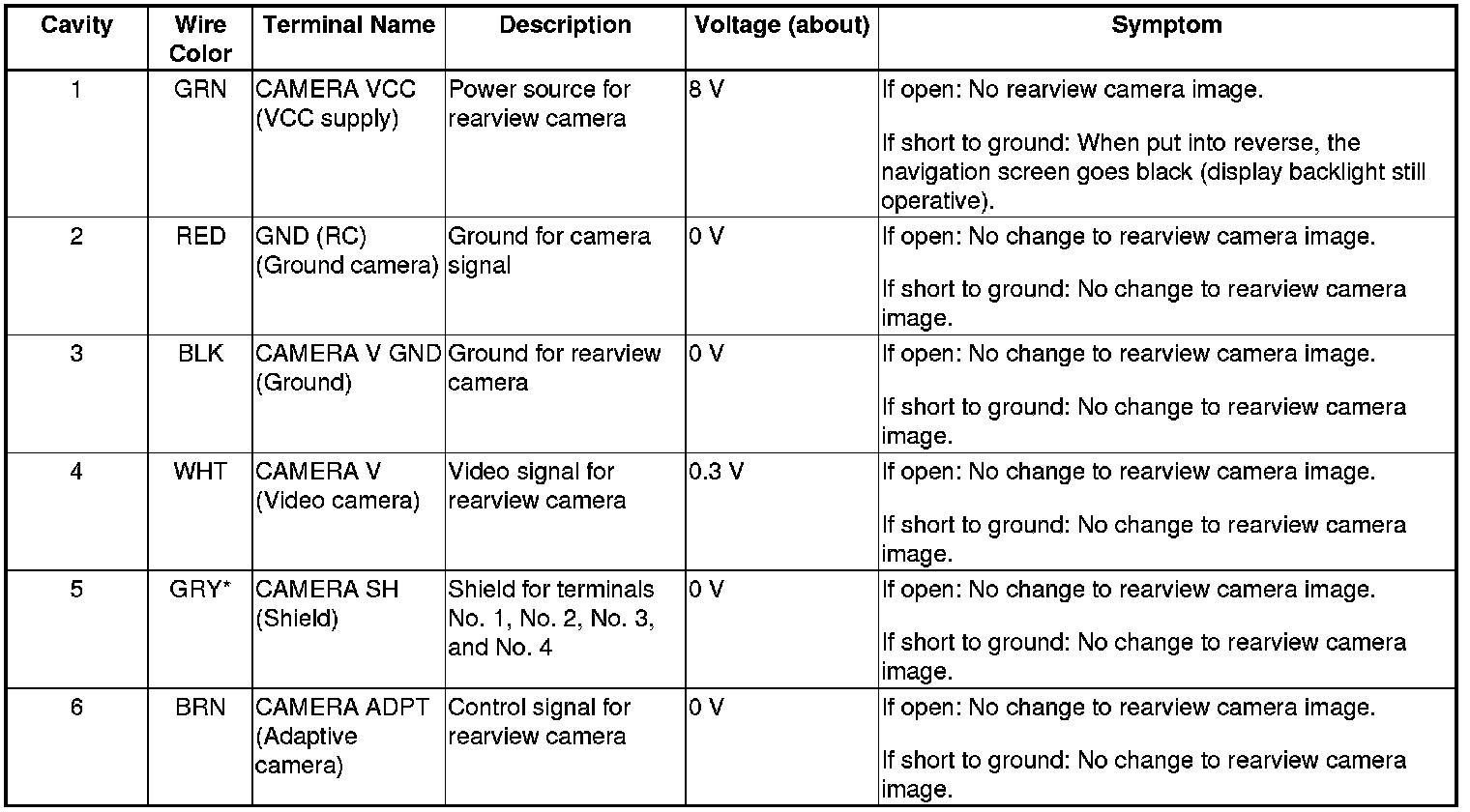 Rearview Camera Inputs and Outputs for 6P Connector