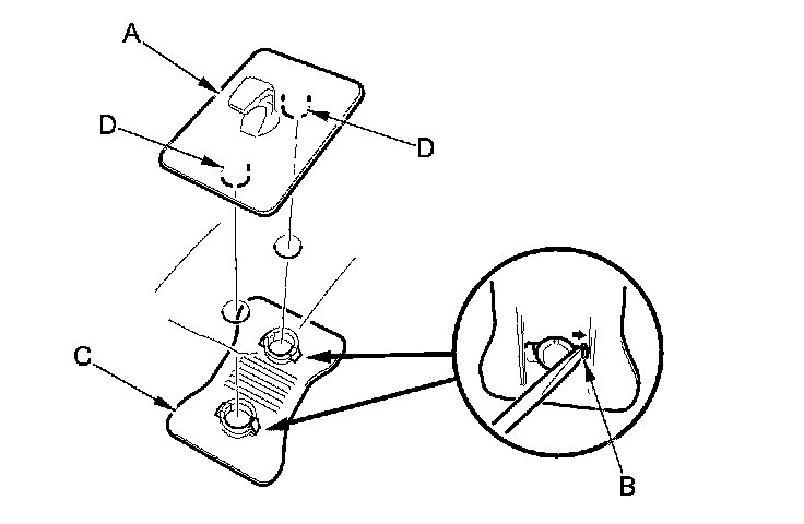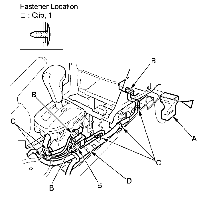 NOTE: Replace the clip D and the grommet as an assembly with a new one.