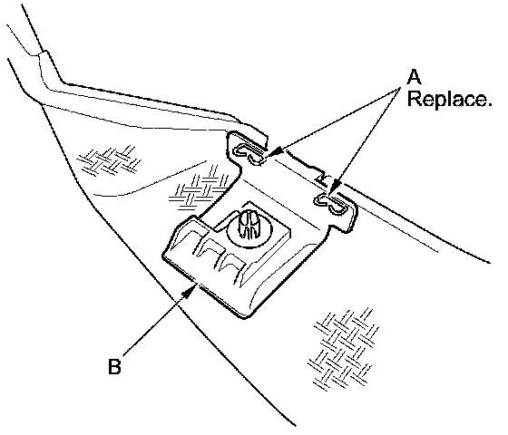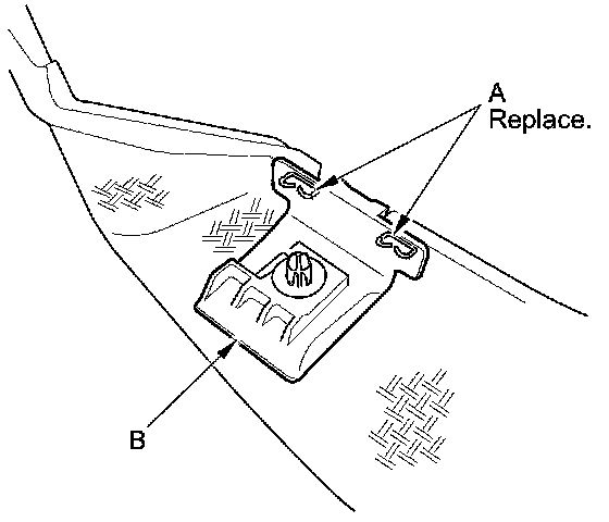 10. If necessary, remove the floor mat holder (A) from the carpet.