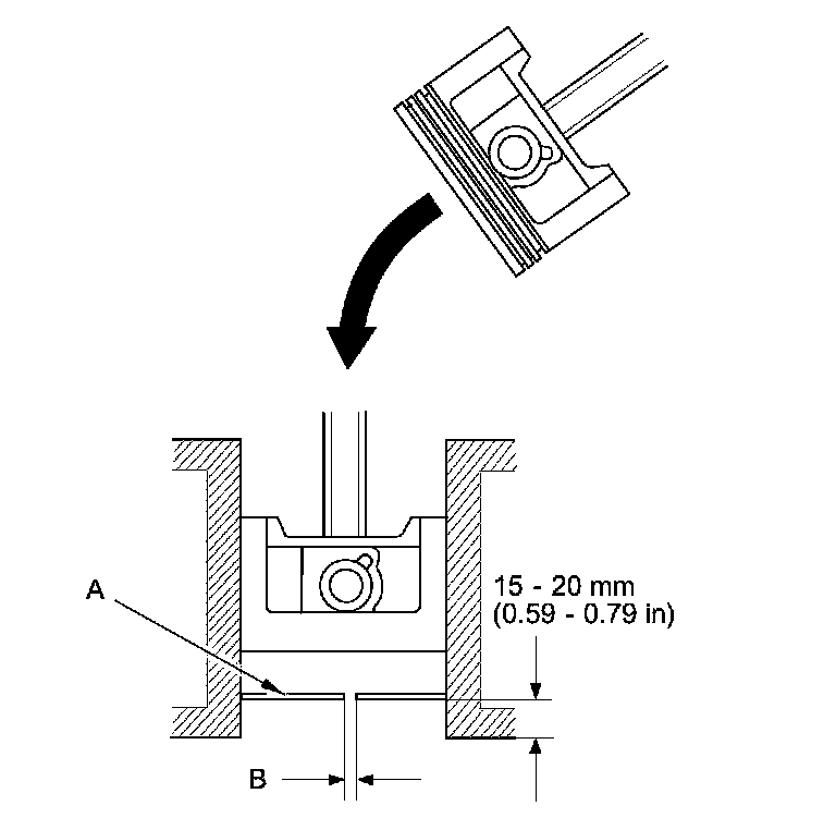 4. Using a piston, push a new ring (A) into the cylinder bore 15-20 mm (0.59-0.79 in) from the bottom.